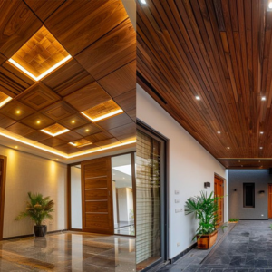 PVC ceiling panels are a top choice for ease of installation and durability. Their resistance to moisture and mildew makes them ideal for bathroom and kitchen ceilings. Available in various colors, these panels are low maintenance and easy to clean, making them a practical and stylish option.
